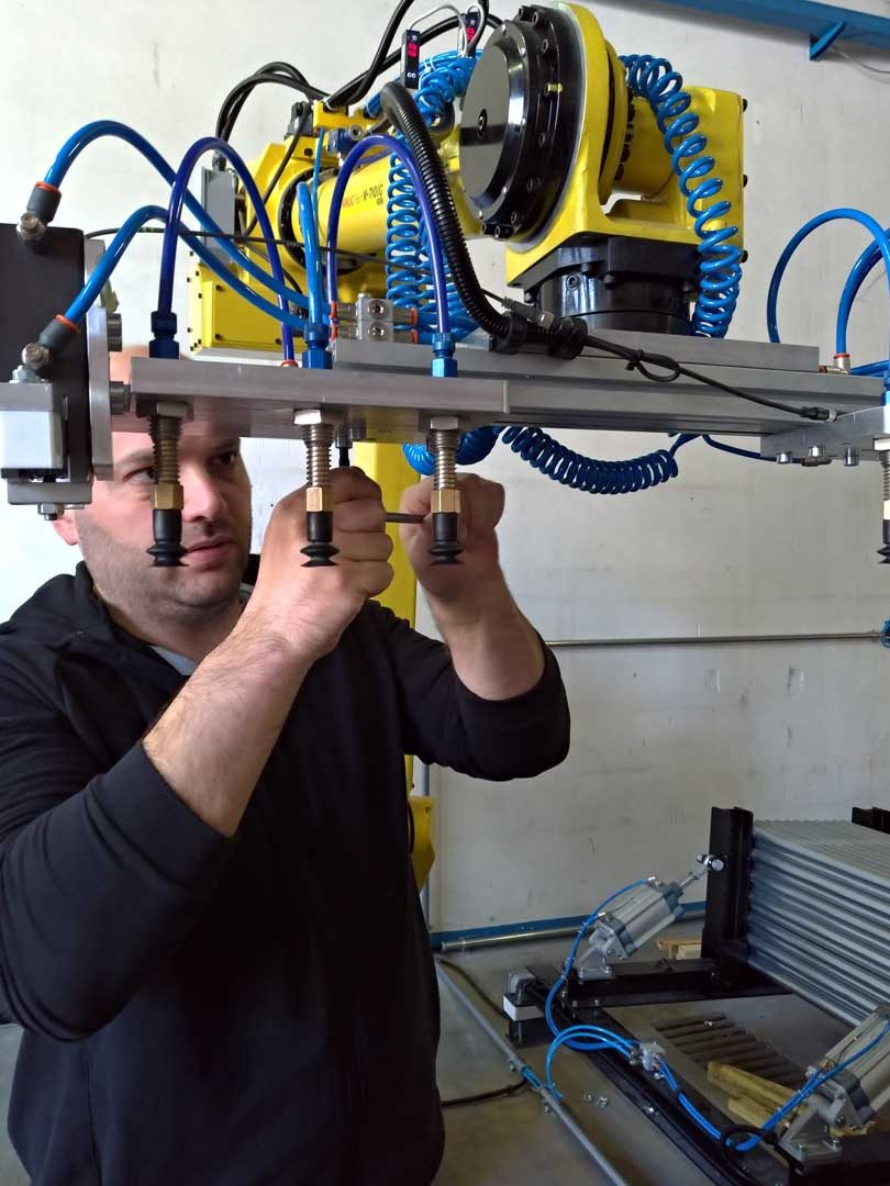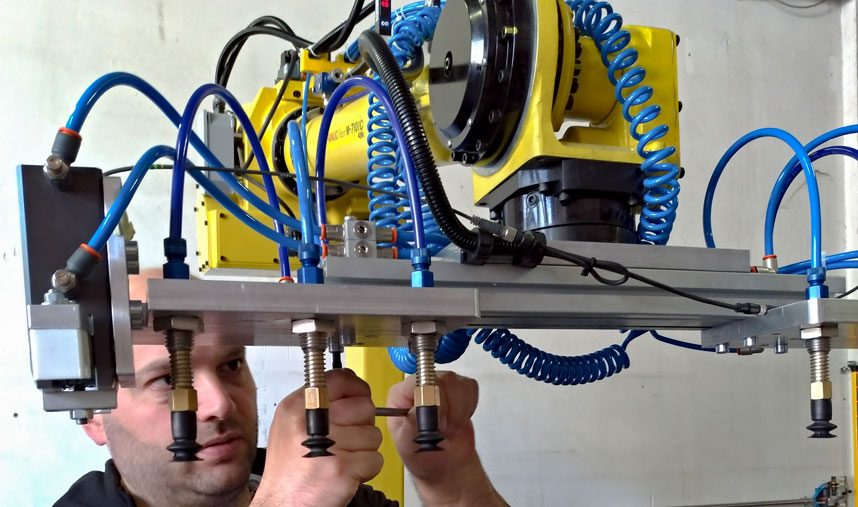 Realizziamo internamente ogni tipo di impianto robotizzato: una volta concordato il progetto con il cliente procediamo con la realizzazione dell’impianto. Una volta completato, l’impianto verrà sottoposto a rigorosi controlli di qualità e a test pre-collaudo con la presenza del cliente.